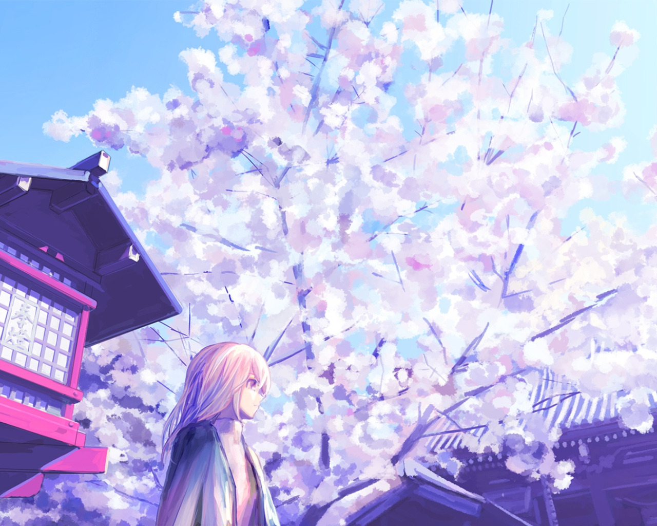 Back to Wallpaper the sky, girl, spring, Sakura, temple