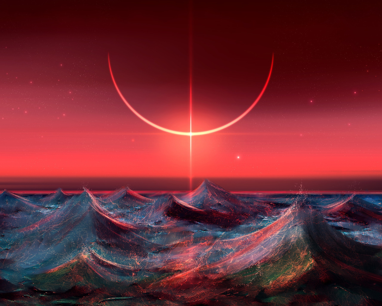 Back to Wallpaper wave, the sky, the sun, landscape, glare, the ocean, the moon, figure