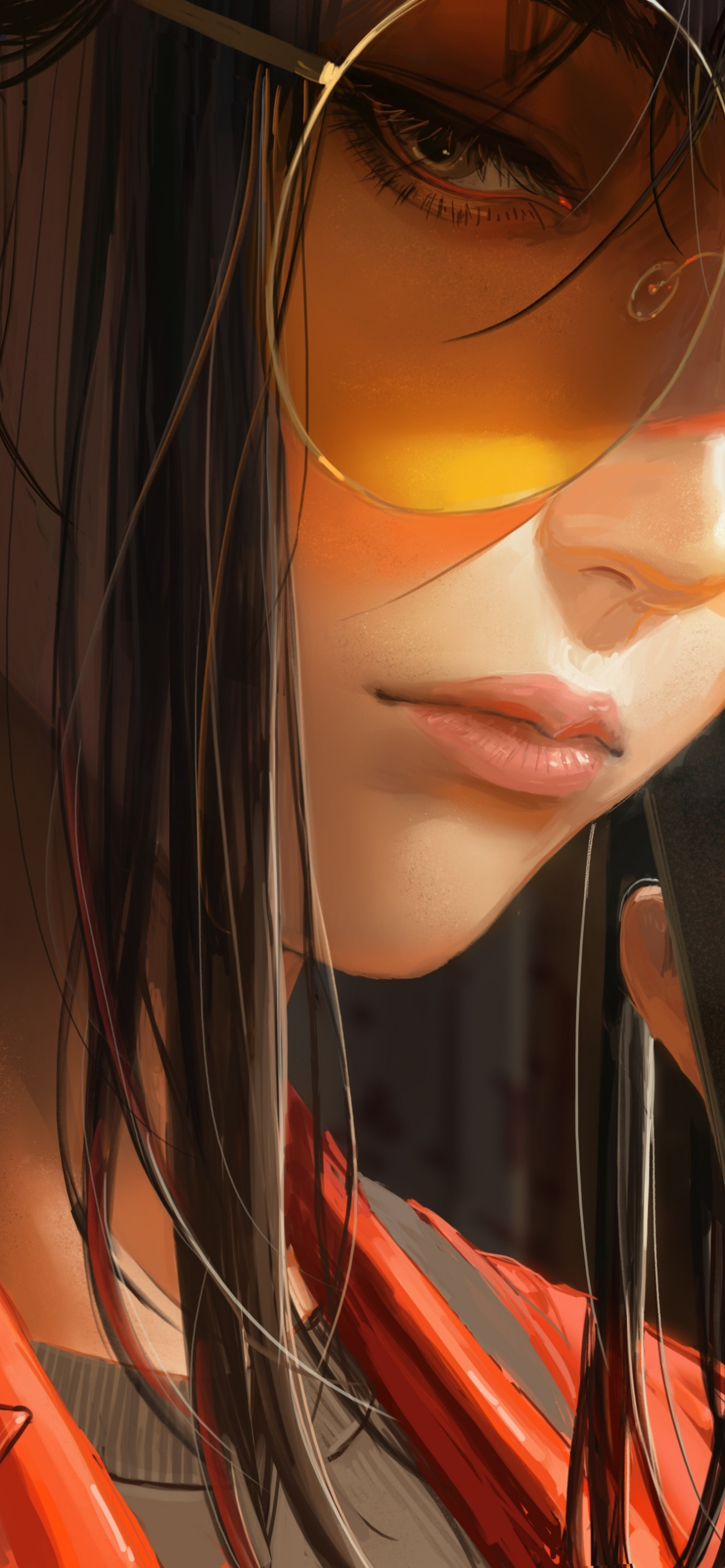Back to Wallpaper girl, glasses, smartphone, Guweiz