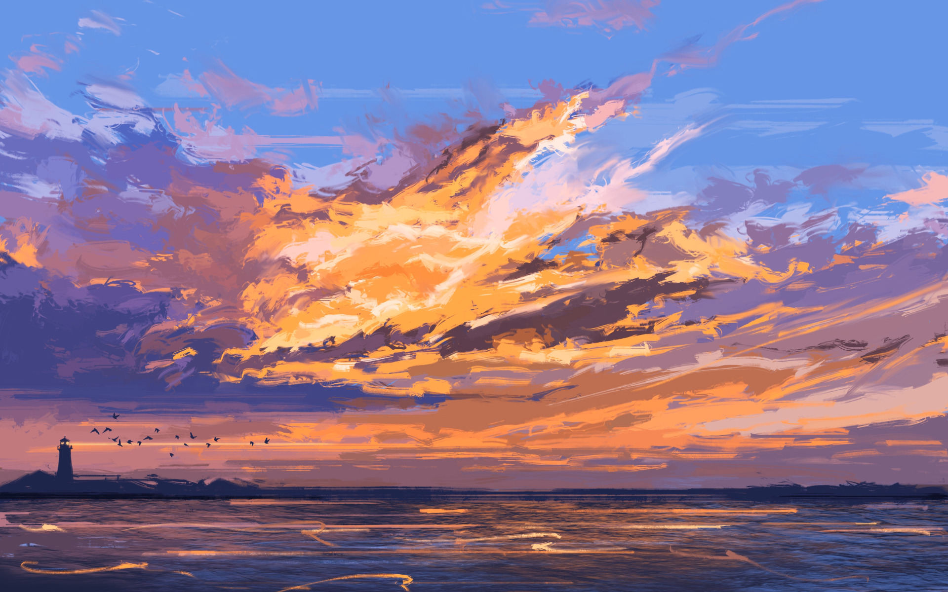 Back to Wallpaper the sky, the ocean, bird, lighthouse
