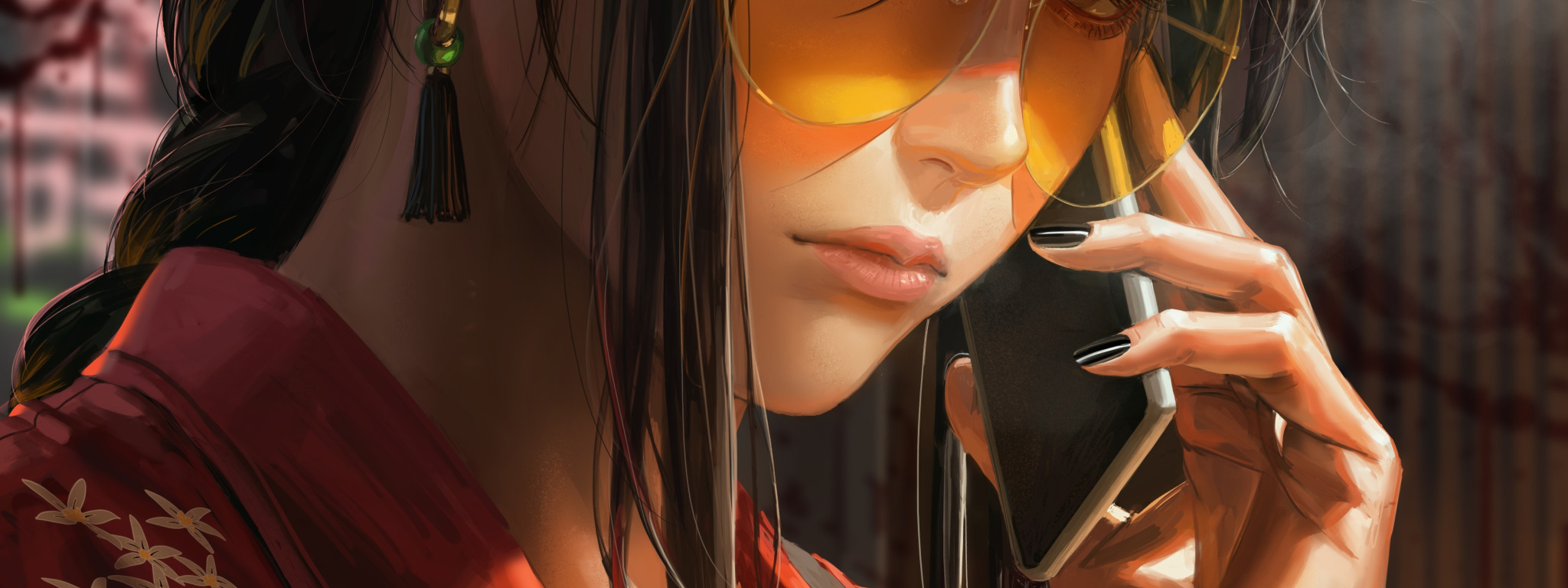 Back to Wallpaper girl, glasses, smartphone, Guweiz
