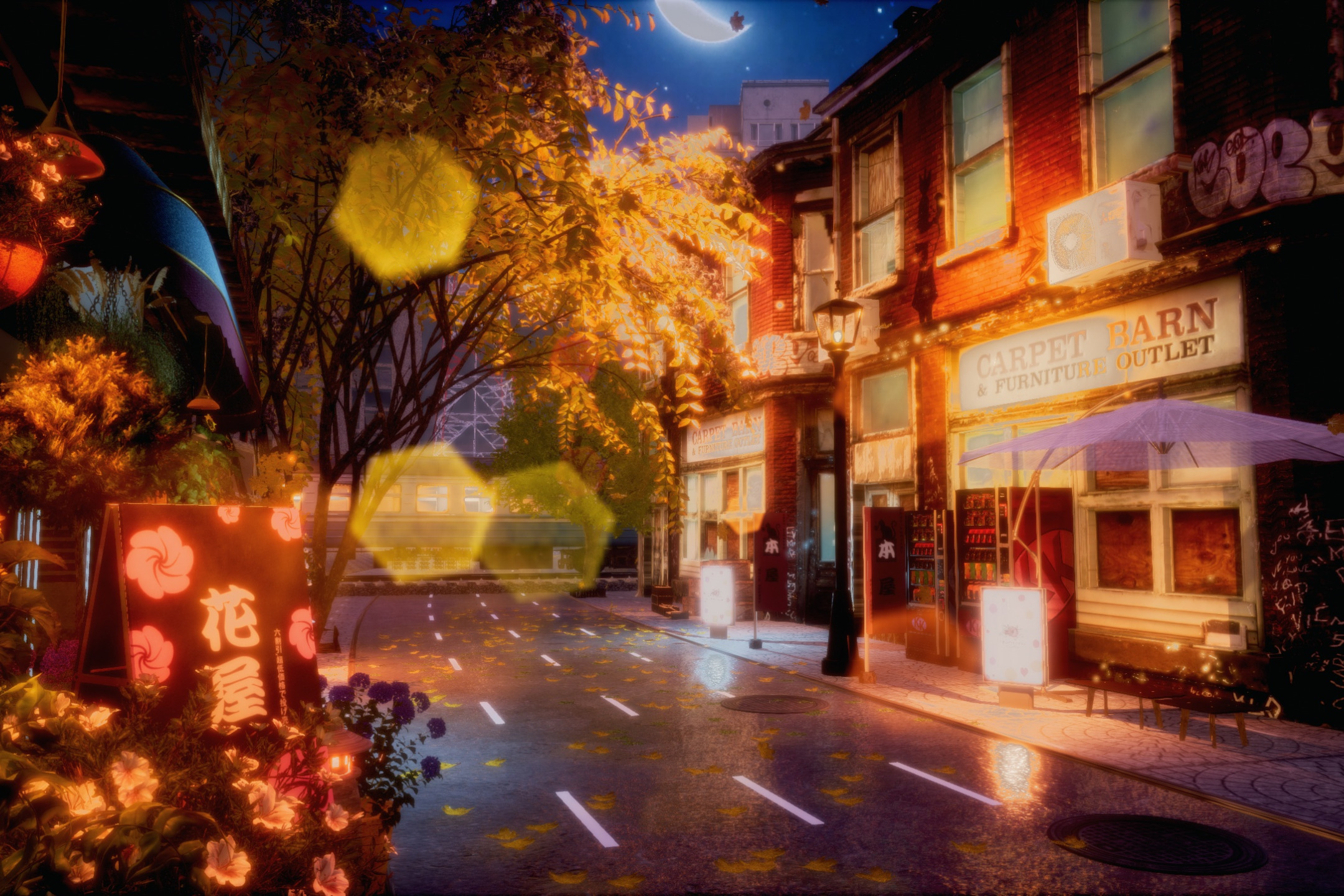 road, autumn, night, street, bokeh