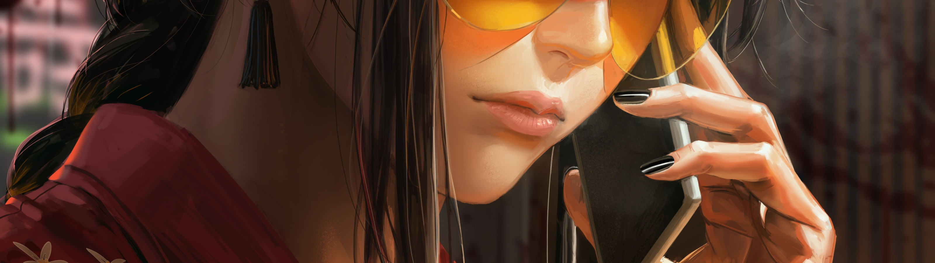 Back to Wallpaper girl, glasses, smartphone, Guweiz