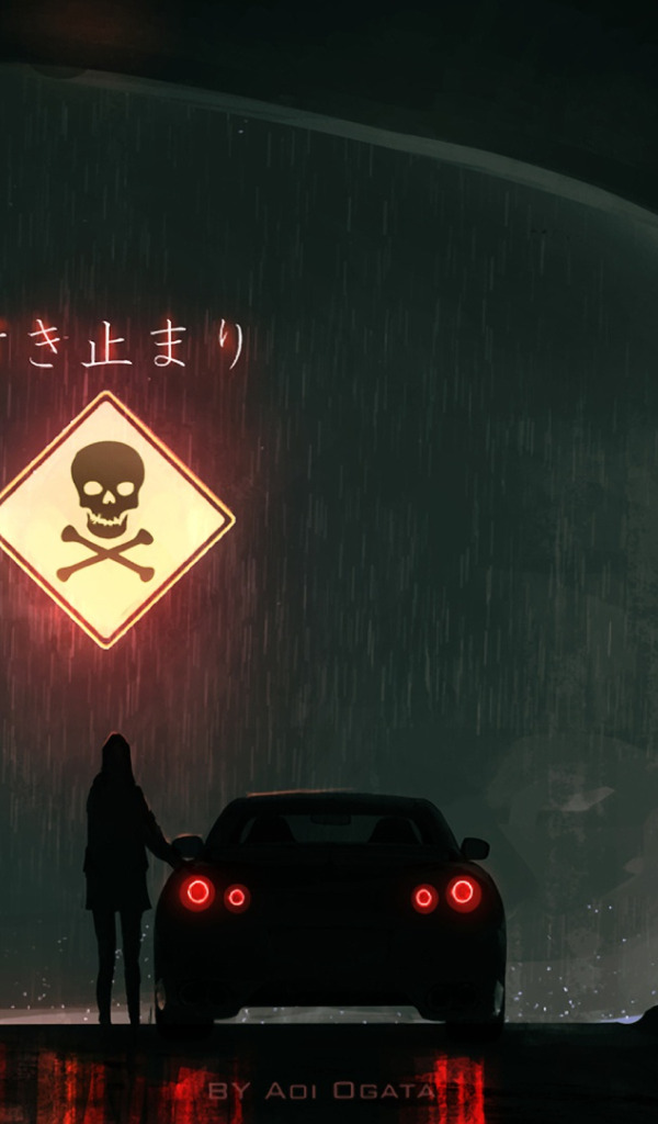 Back to Wallpaper girl, night, rain, sign, skull