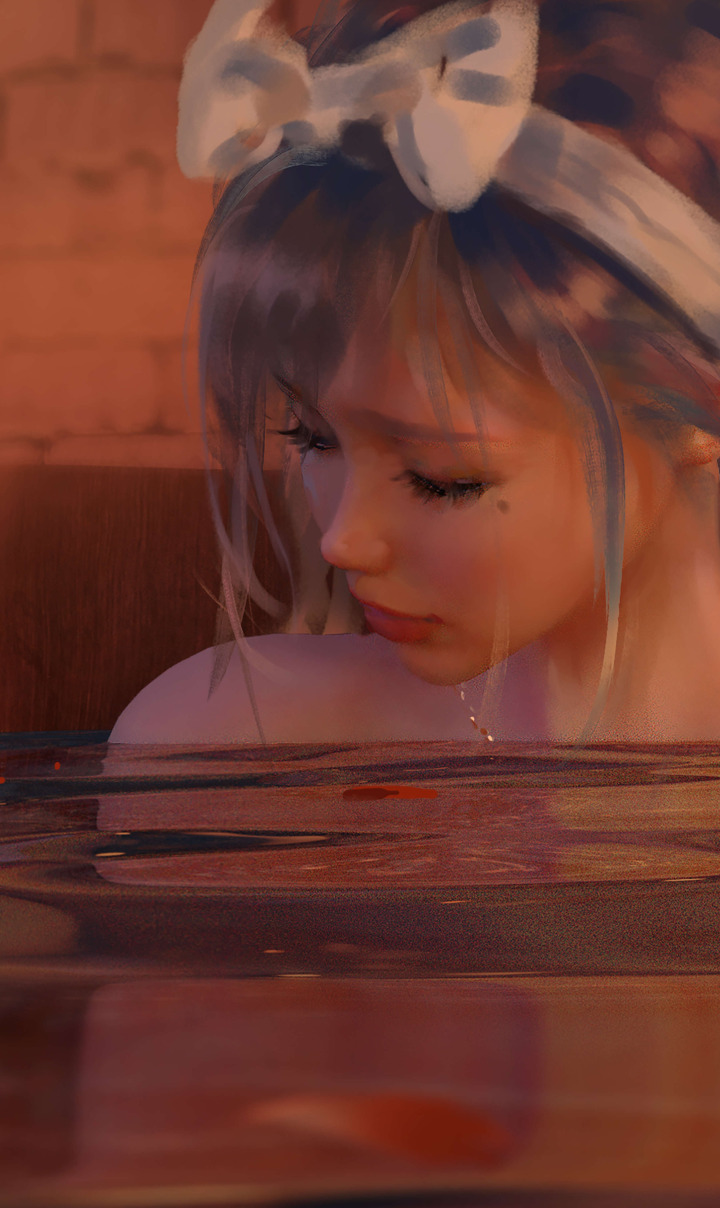 water, girl, elf, fantasy, Ghost Blade, Wlop, Yan