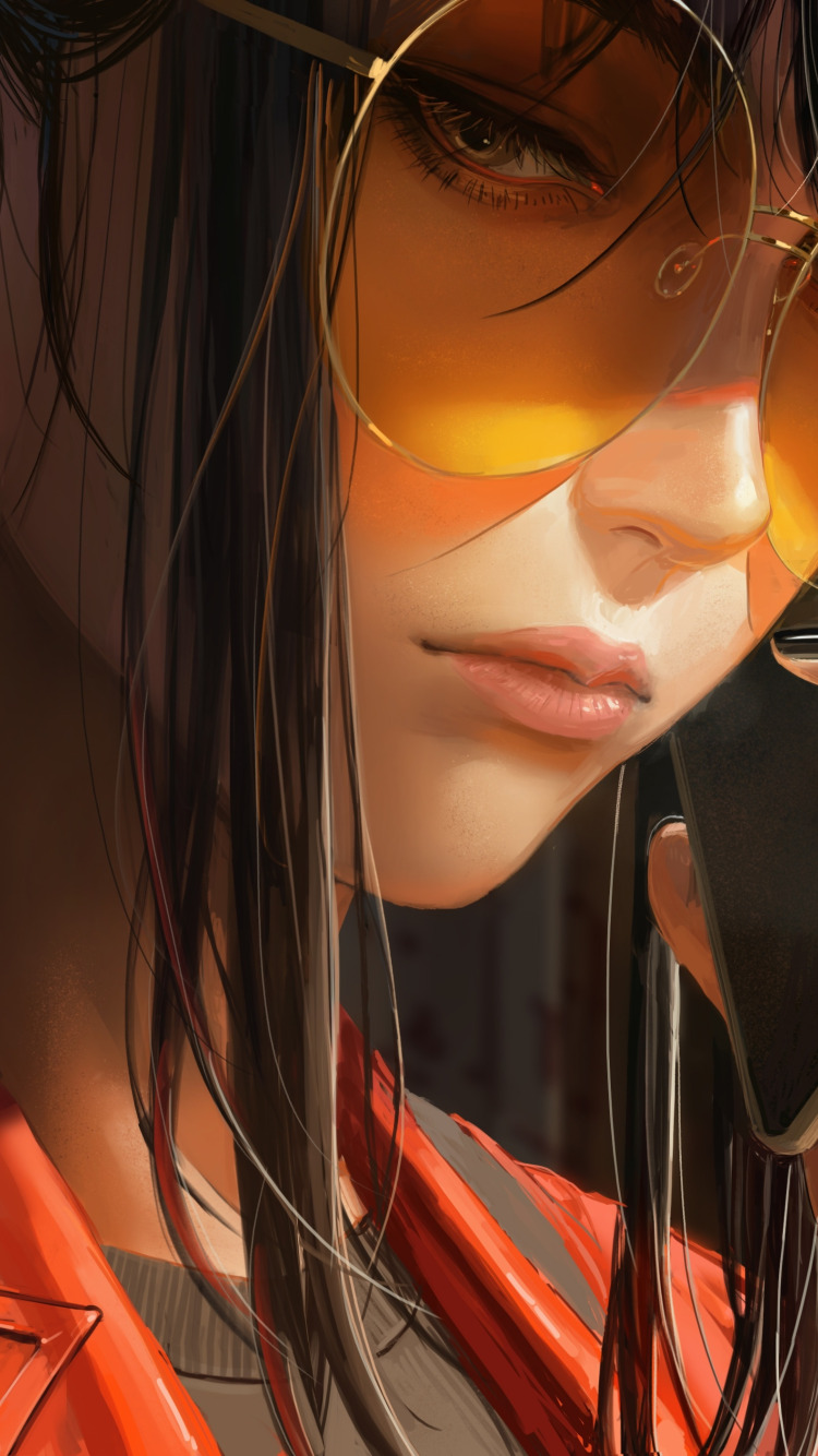 Back to Wallpaper girl, glasses, smartphone, Guweiz