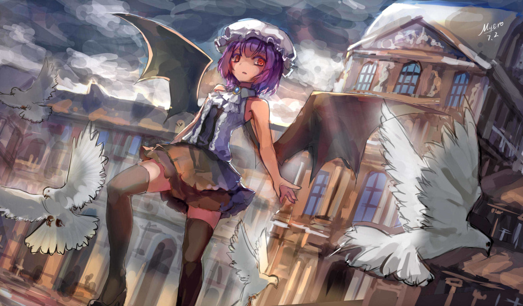 girl, wings, anime, touhou, Remilia Scarlet
