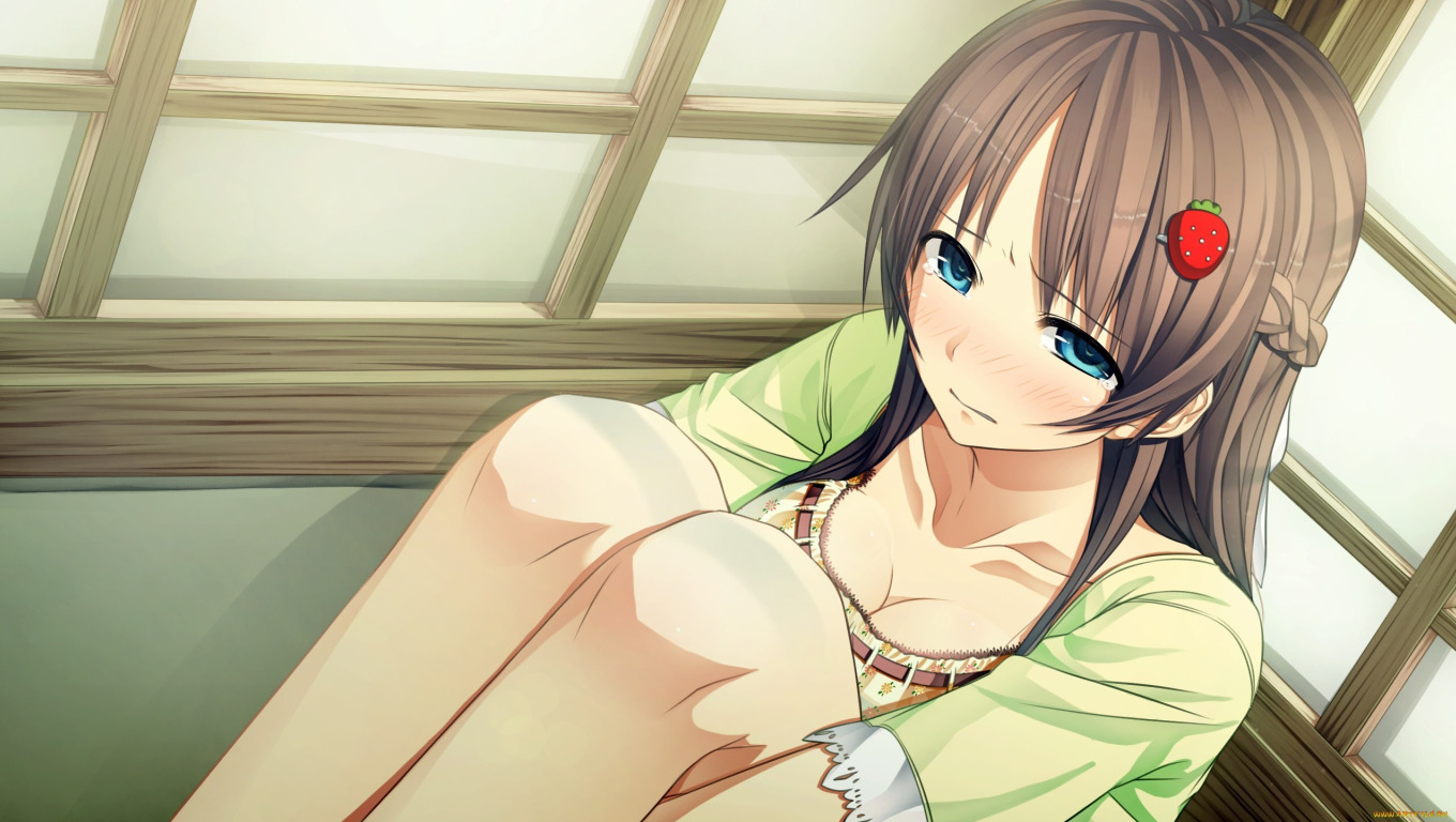 Back to Wallpaper girl, anime, strawberry, barrette, monobeno