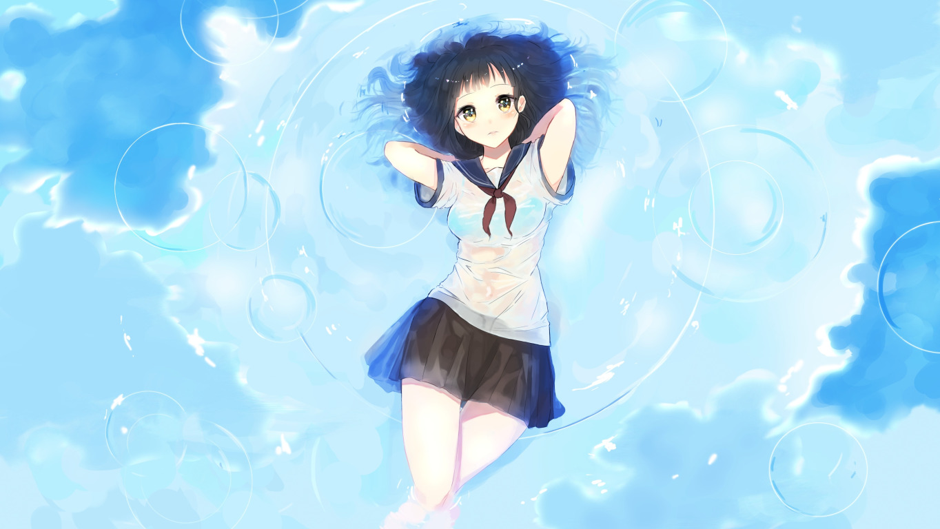 Back to Wallpaper the sky, water, girl, clouds, bubbles, anime, art, form