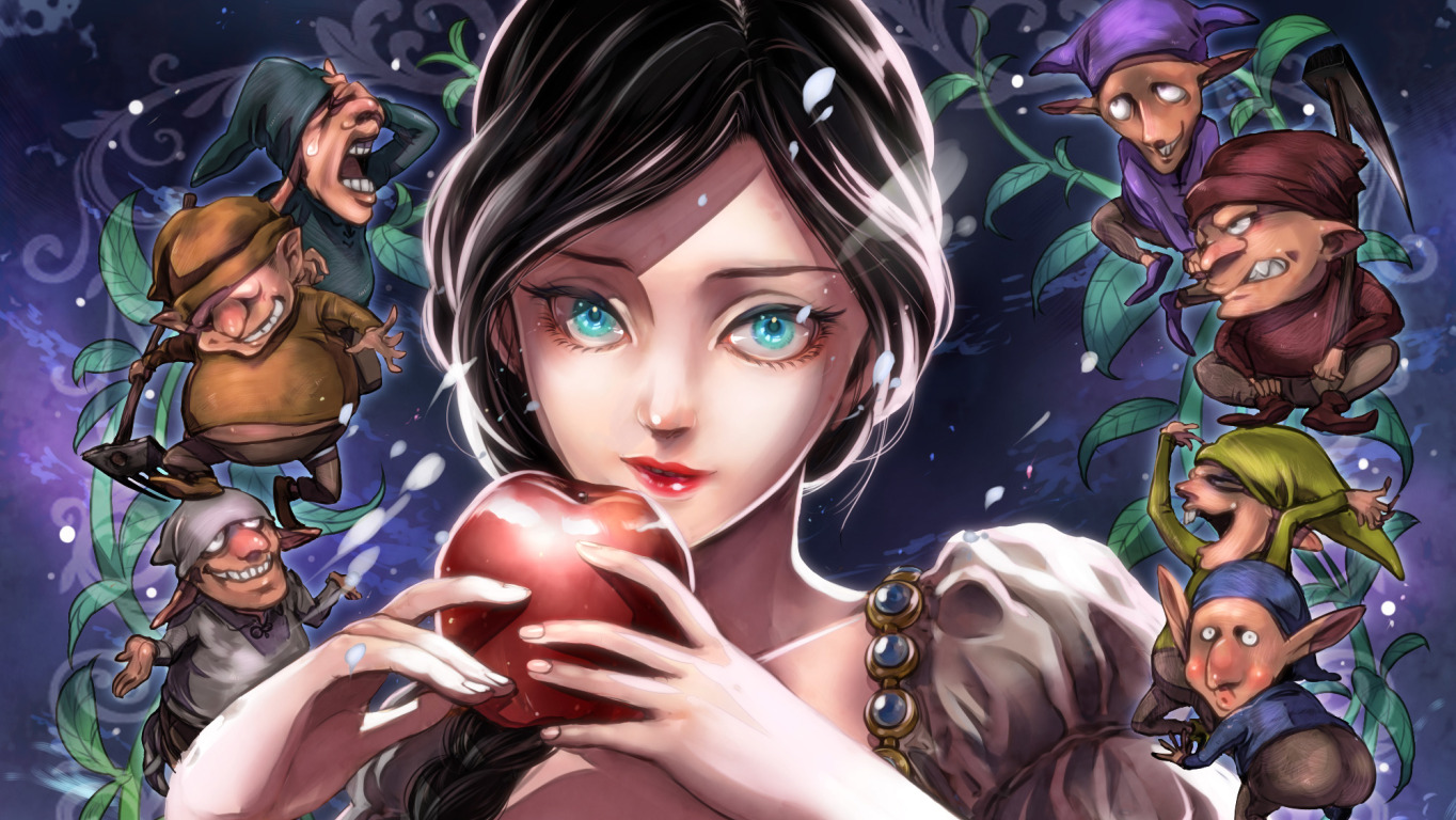 Back to Wallpaper girl, apples, dwarf, Snow white