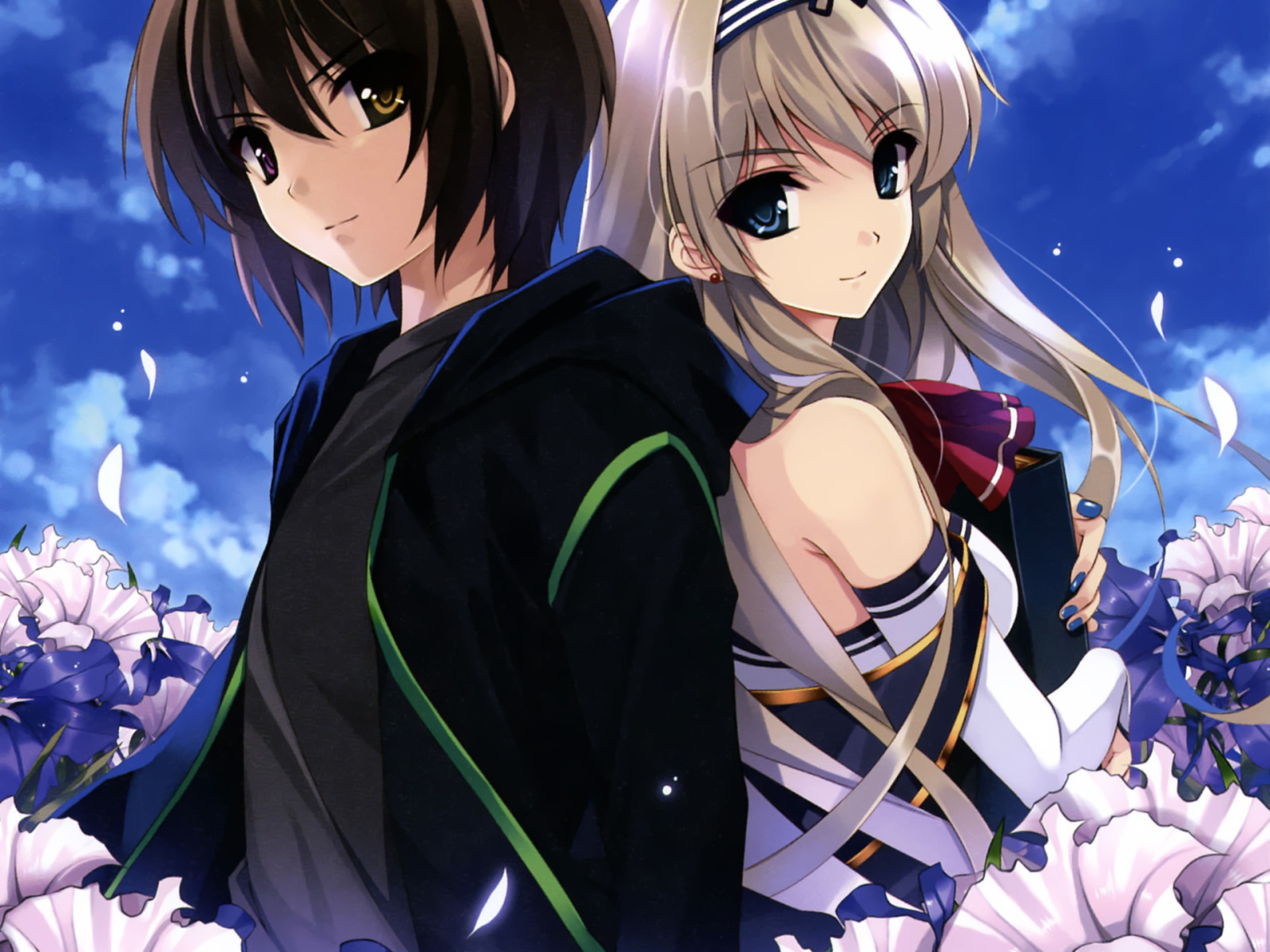Back to Wallpaper the sky, look, girl, flowers, smile, mood, book, guy