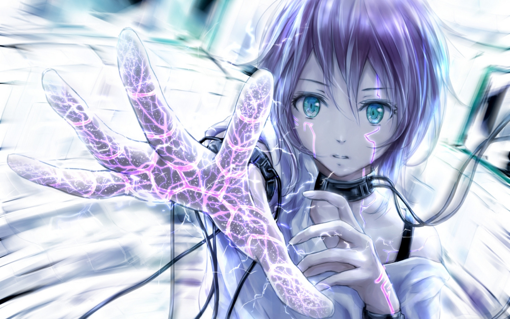 Back to Wallpaper girl, magic, wire, anime, hands, art, collar, nuwanko