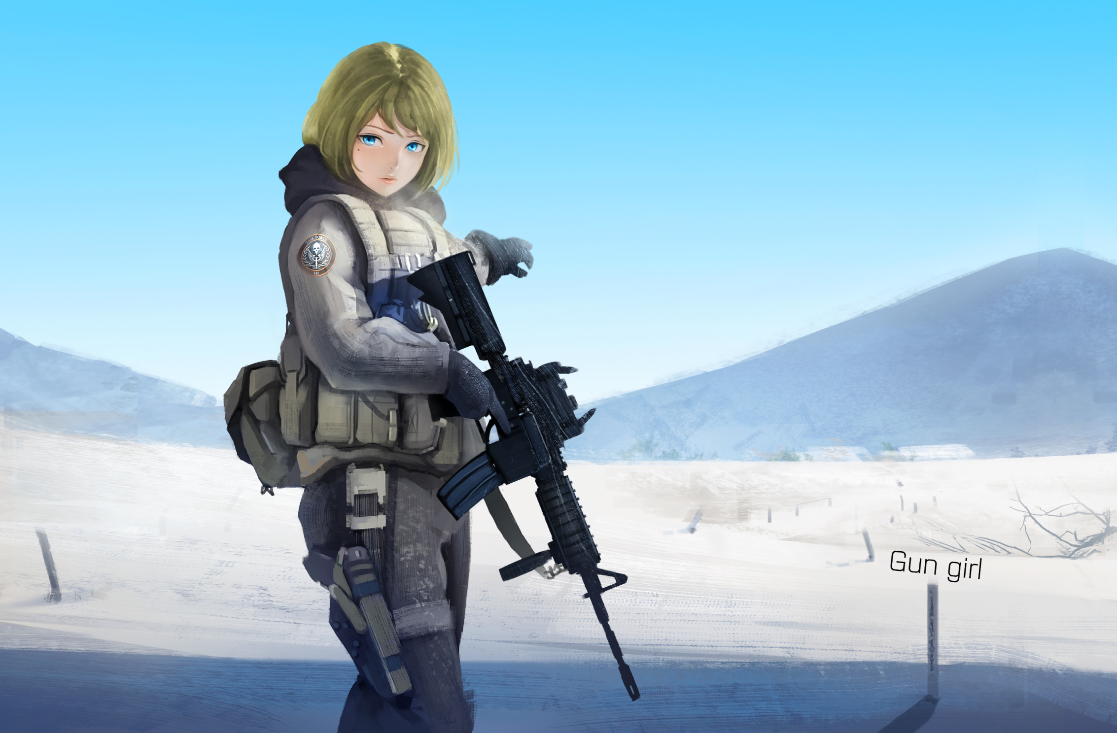 Back to Wallpaper girl, mountains, weapons, desert, anime, art, soldiers, pantsu shinshi