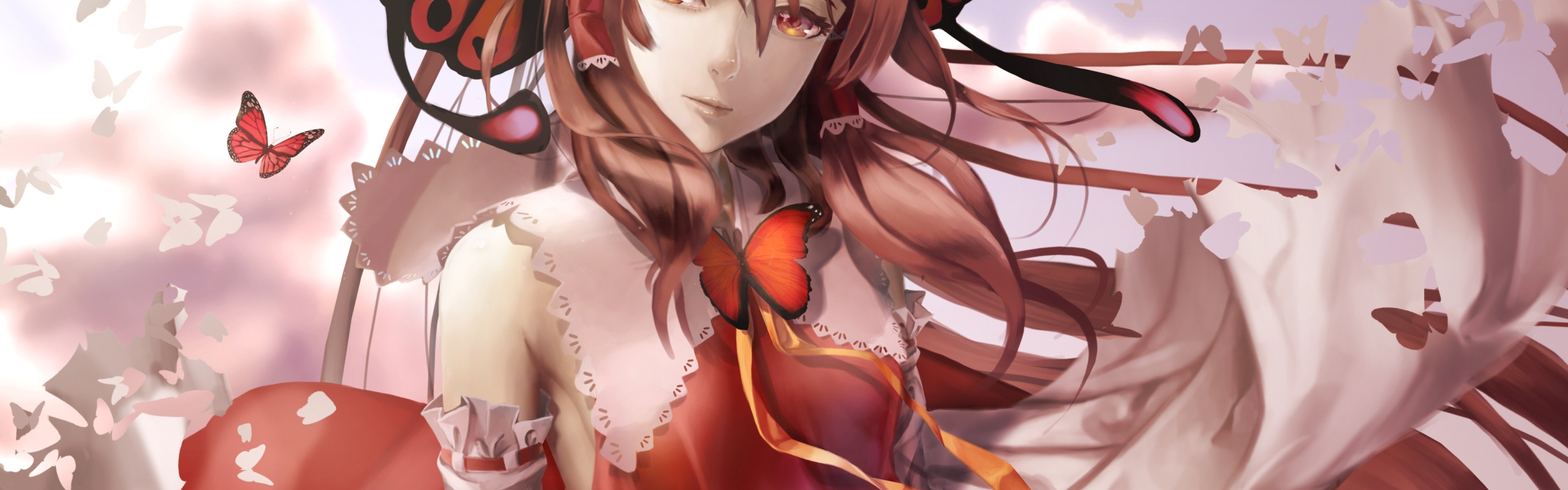 Back to Wallpaper look, girl, smile, the wind, butterfly, touhou, art, lepus