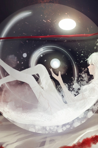 Back to Wallpaper girl, glare, bubbles, balls, blood, anime, art, tape