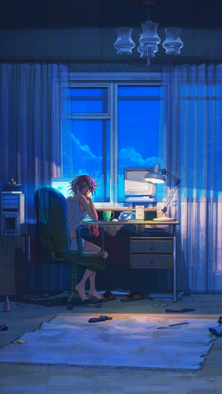 Back to Wallpaper computer, night, room, things, lamp, TV, art, girl