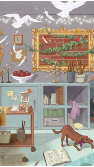 fish, room, magic, apples, frame, dog, picture, cell
