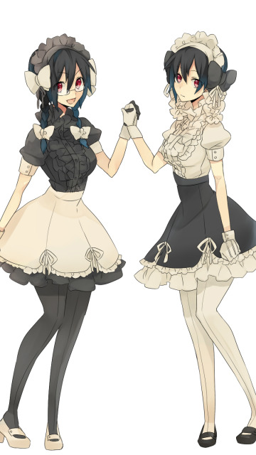 Back to Wallpaper girl, two, glasses, white background, gloves, braid, bow, ruffles