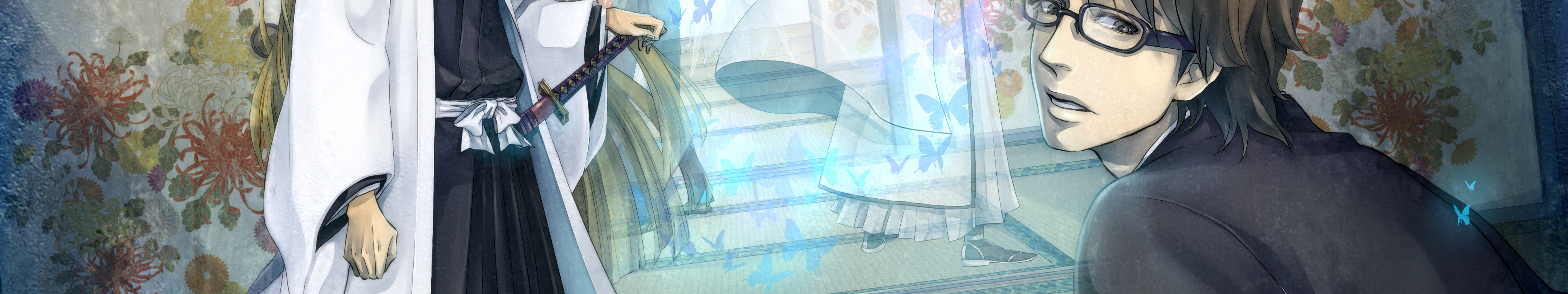 Back to Wallpaper weapons, butterfly, katana, kimono, Bleach, Aizen Sousuke, Hirako Shinji