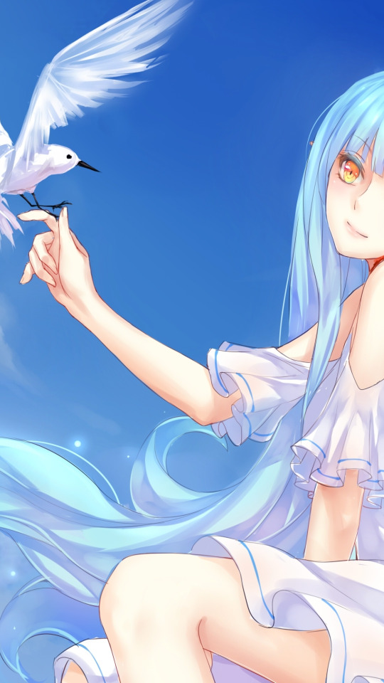 Back to Wallpaper the sky, girl, clouds, smile, bird, anime, art, misaki krokodi