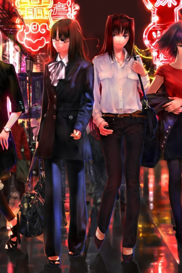 girl, night, the city, lights, street, ryougi shiki, saber, fate zero