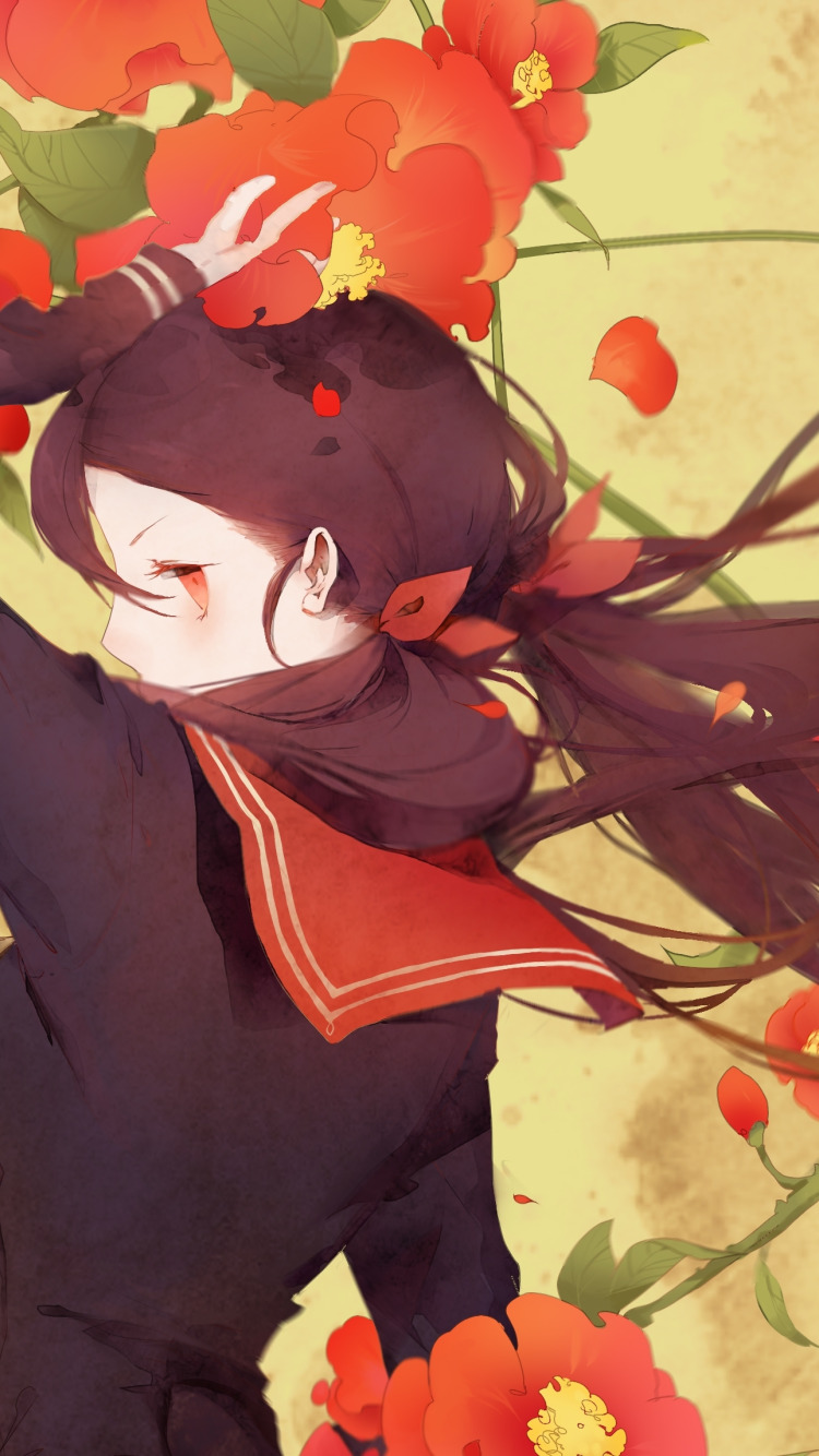Back to Wallpaper girl, anime, art, school uniform, long hair, anime, red flowers