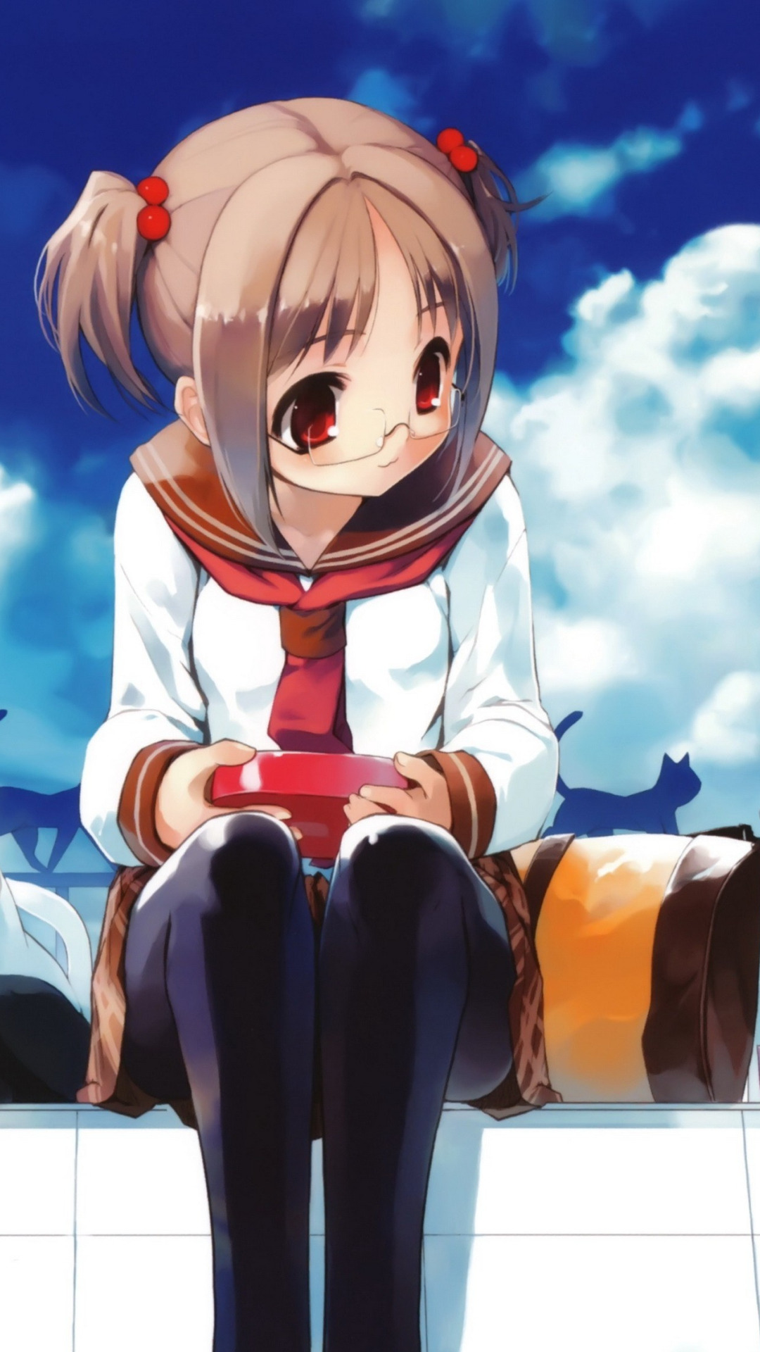 Back to Wallpaper cat, the sky, clouds, anime, glasses, girl, uniform