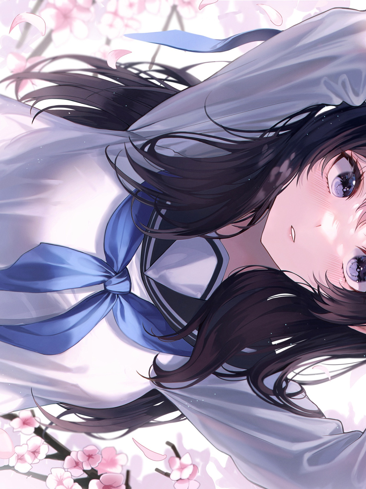 Back to Wallpaper girl, school uniform, long hair, anime, flowers, beautiful, purple eyes, pretty