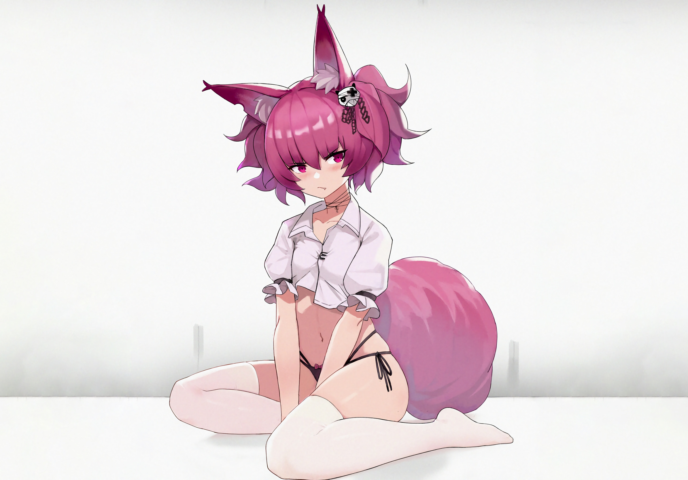 girl, sexy, lingerie, blouse, panties, thighhighs, pink hair, legs