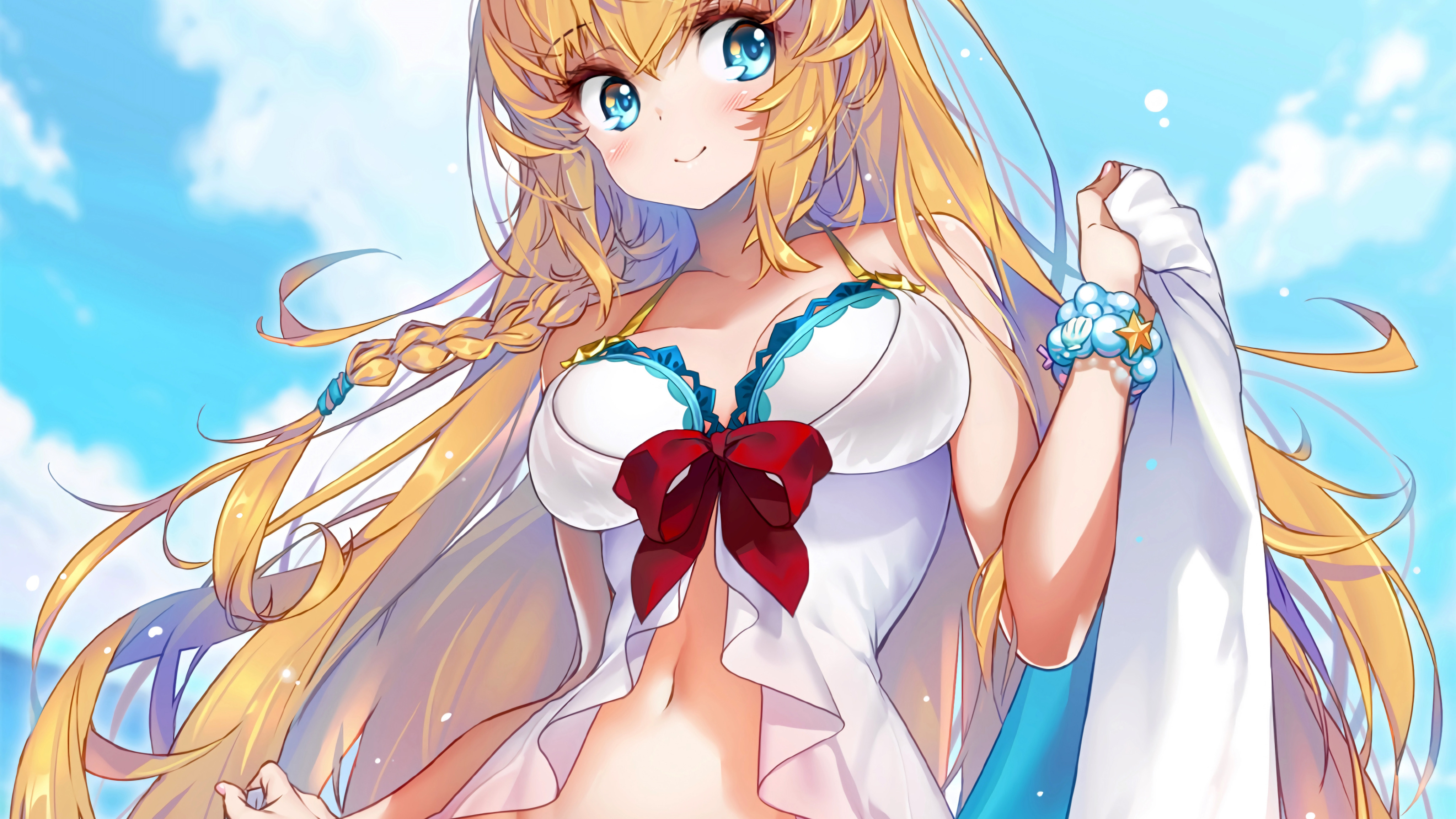 girl, sexy, cleavage, blouse, long hair, boobs, anime, beautiful