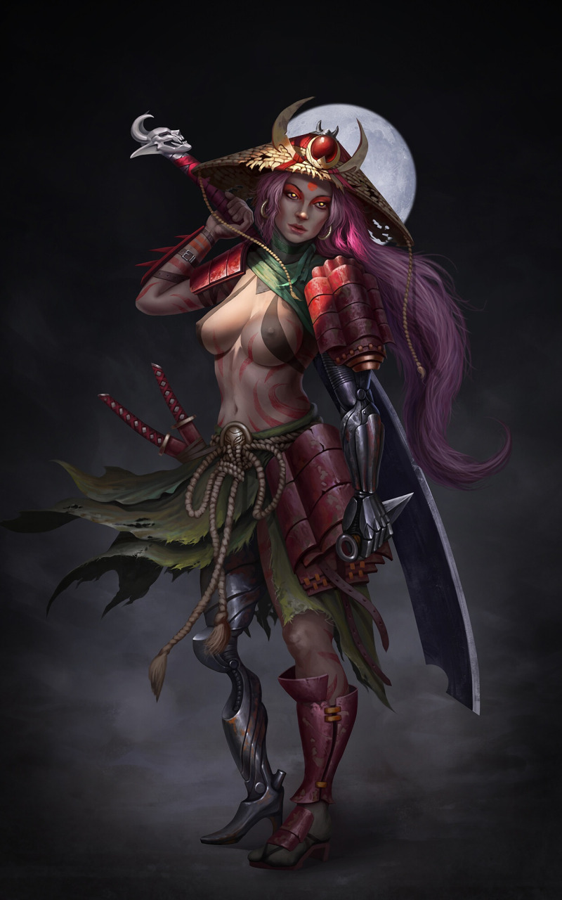 Back to Wallpaper moon, night, art, samurai, warrior, Illustration, Minimalism, Characters