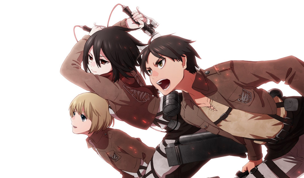 Back to Wallpaper each, attack, white background, emblem, art, military uniform, blade, Shingeki no Kyojin