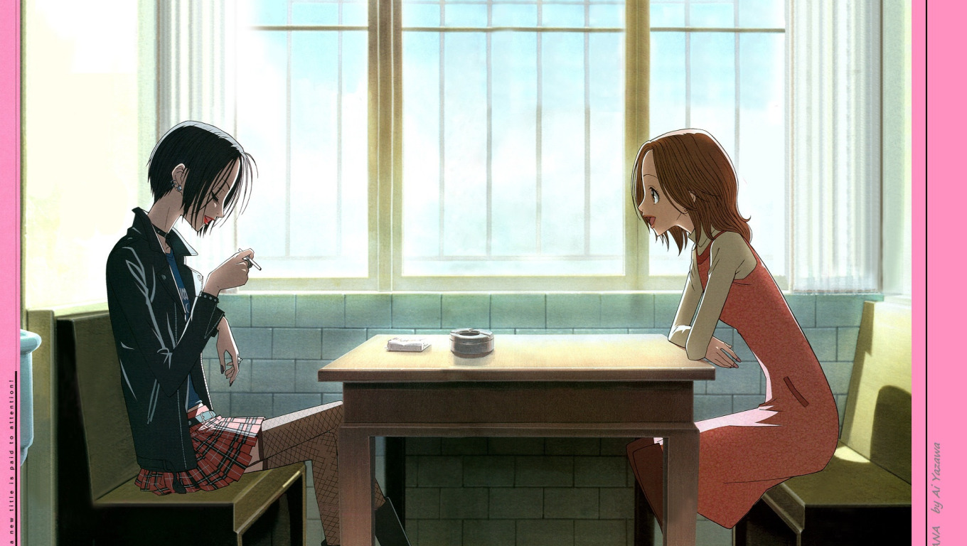 Back to Wallpaper room, sofa, cigarette, ashtray, Nana, friend, window, at the table