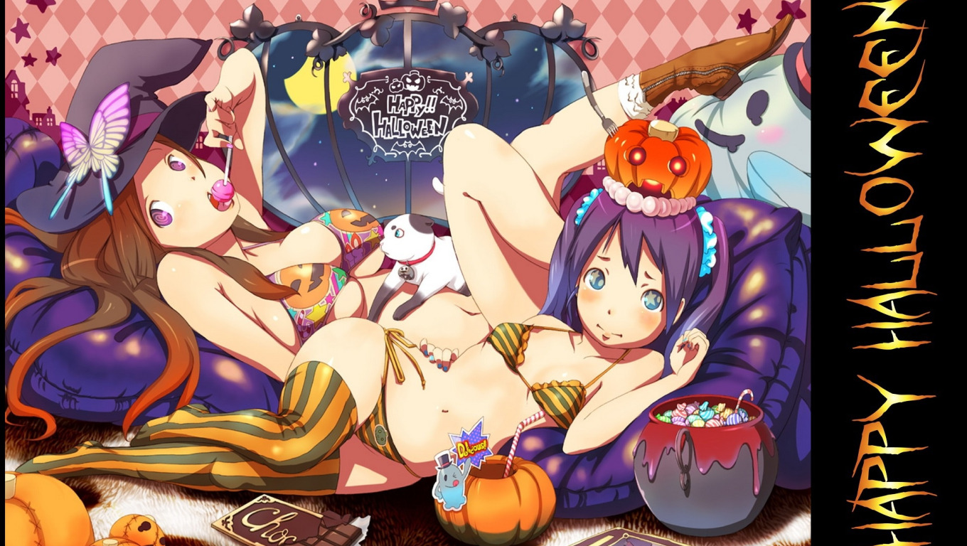 Back to Wallpaper chocolate, pillow, sweets, bikini, kitty, Happy Halloween, witch, striped stockings