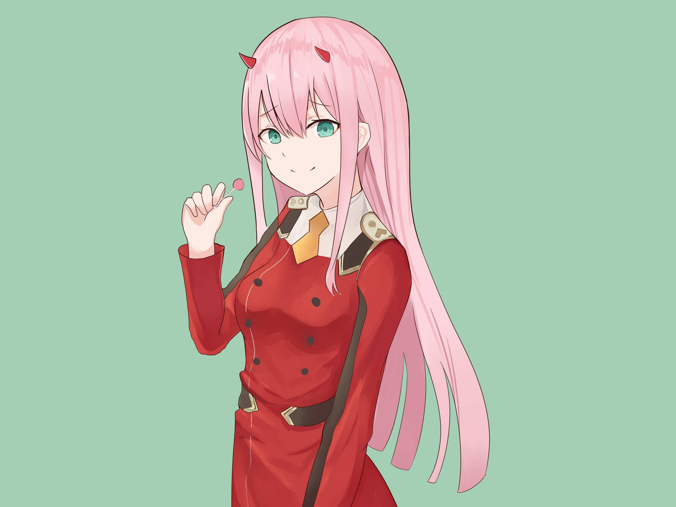 Back to Wallpaper girl, art, green background, 002, Darling In The Frankxx, Cute in France, Zero Two