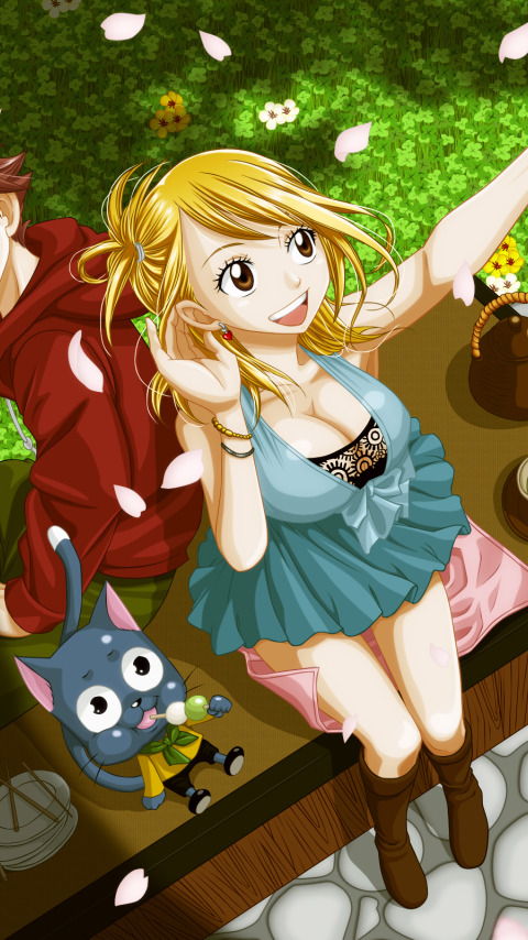 Back to Wallpaper girl, spring, the tea party, guy, flowering, fairy tail, Happy, Natsu Dragneel